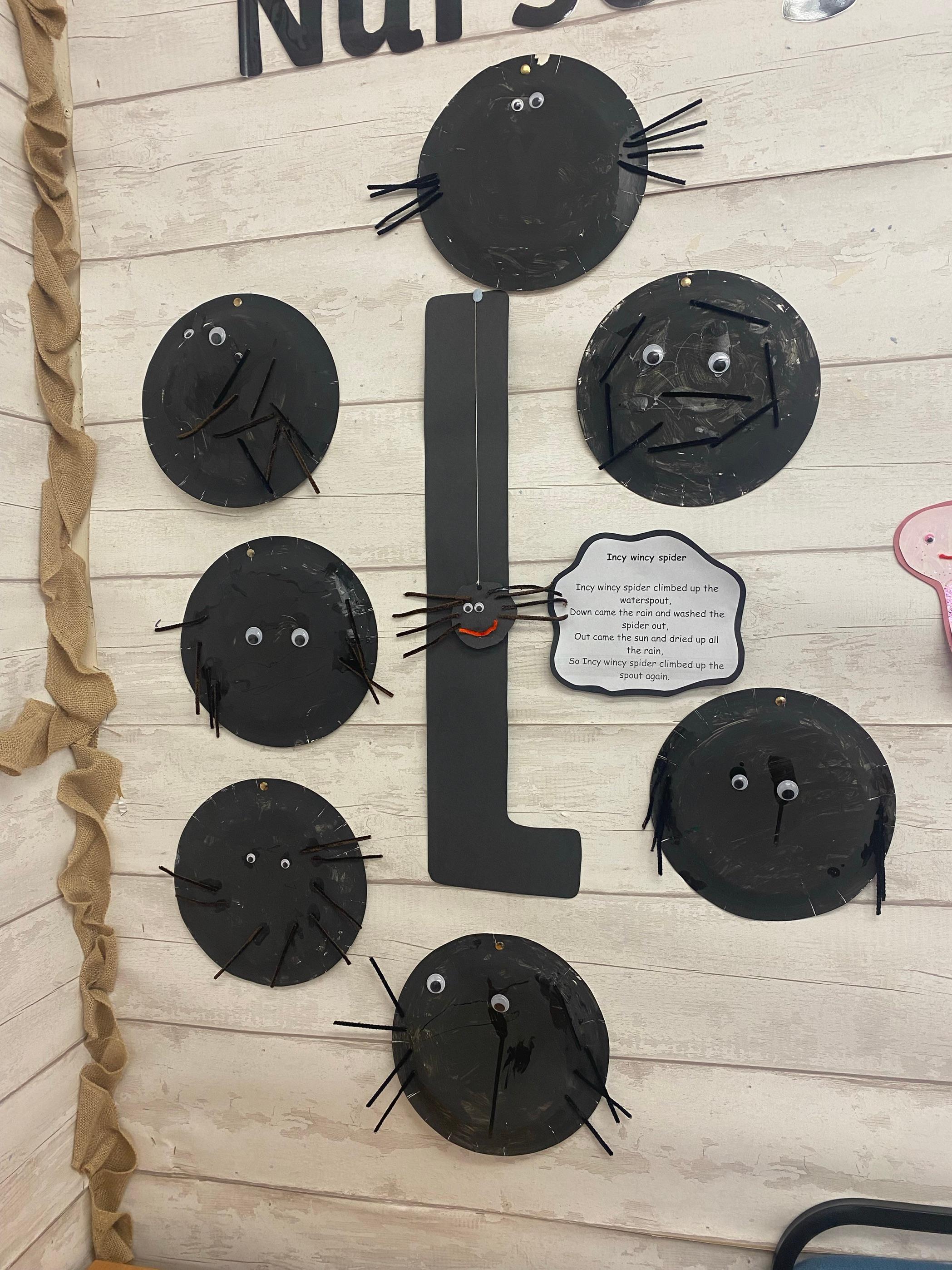 We have learnt the nursery rhyme inch wincy spider and enjoyed making our own spiders. We went on a spider hunt and spotted quite a few!