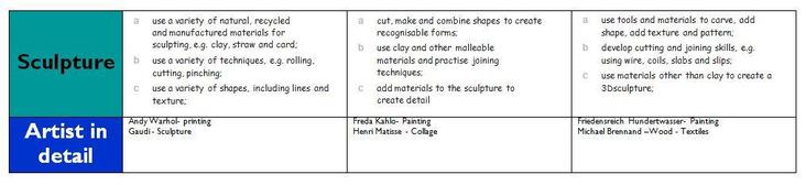 - know about great artists, craft makers and designers, and understand the historical and cultural development of their art forms.