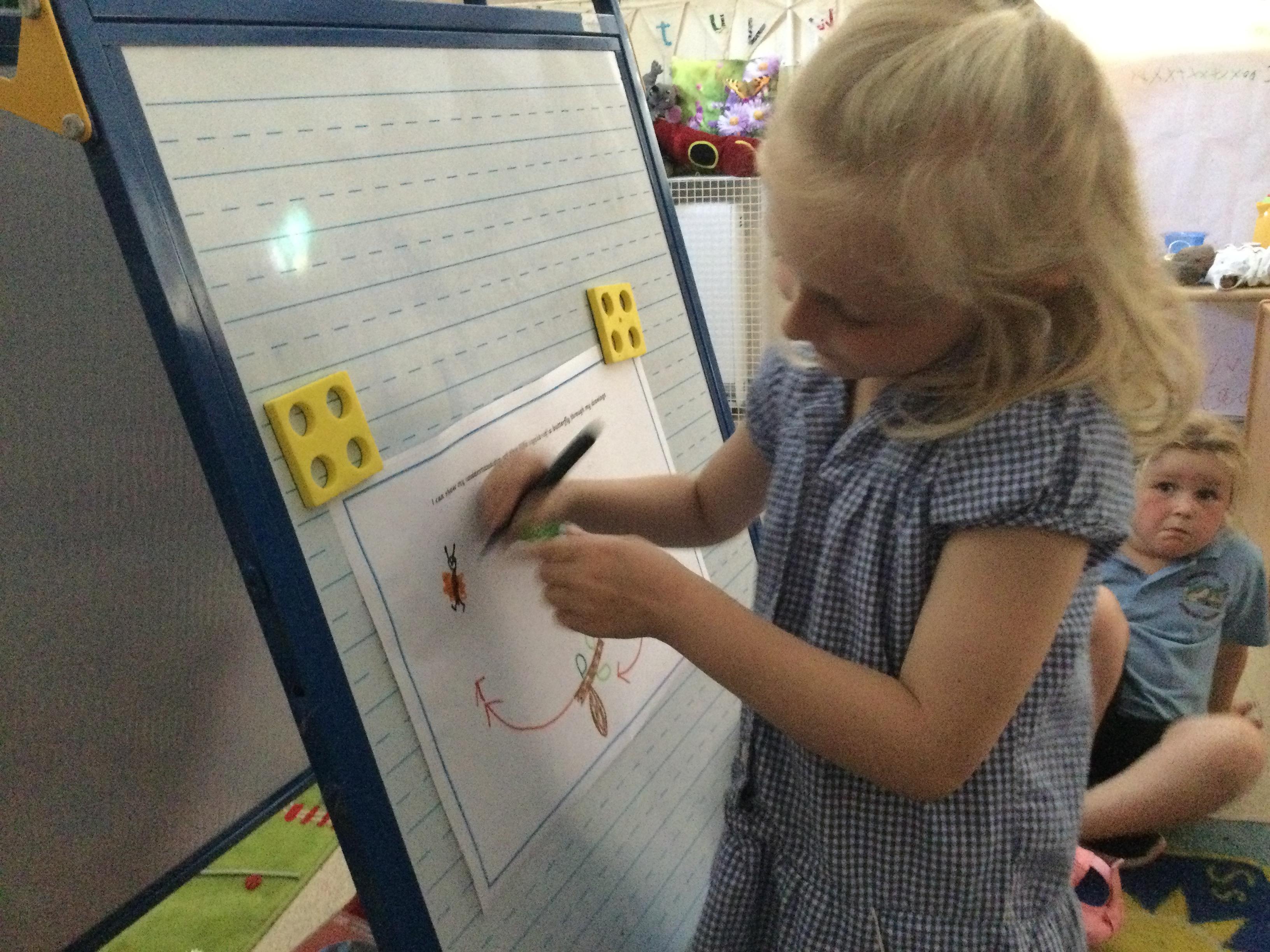 Helping Mrs Taylor draw part of the lifecycle of a butterfly.