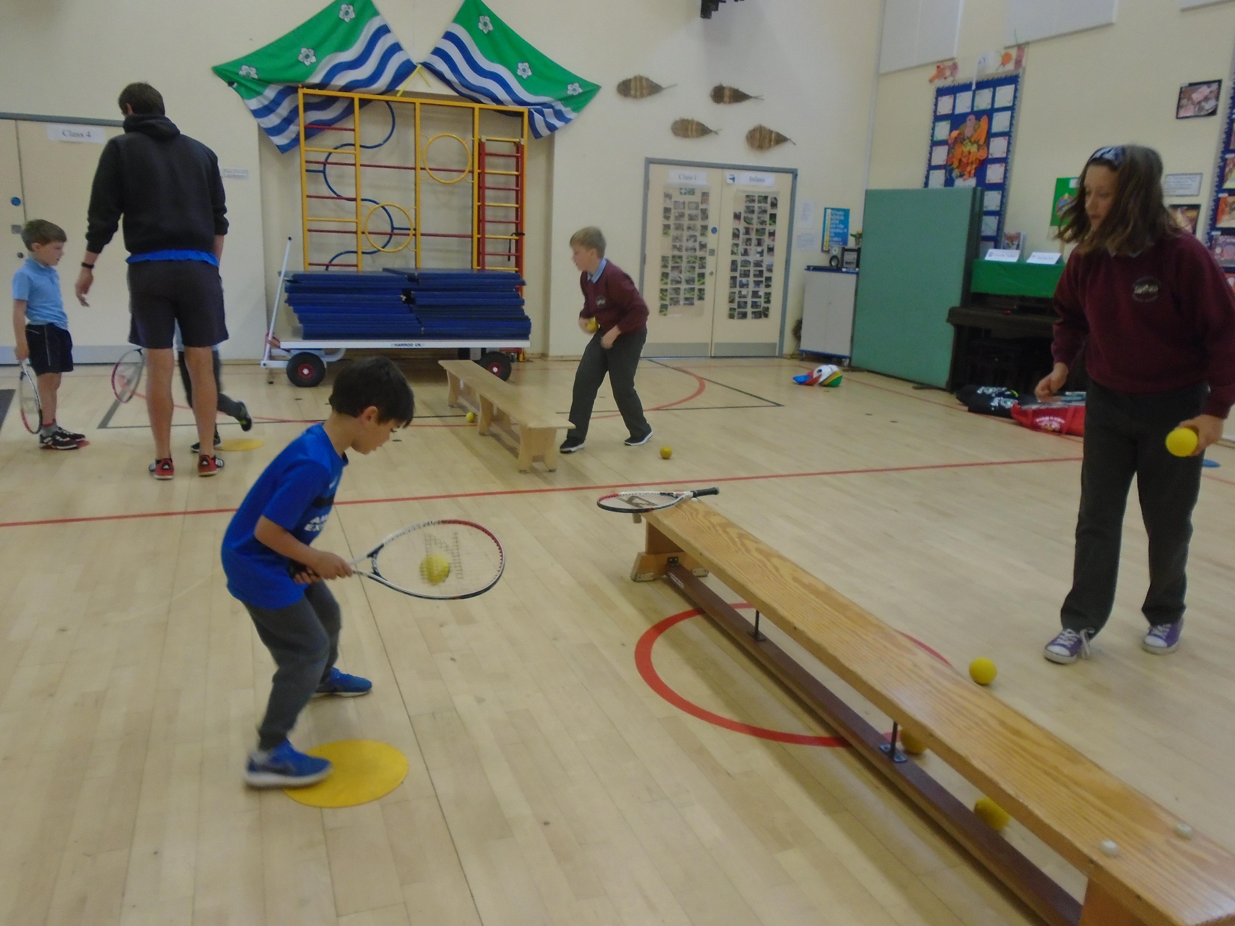 Class 4 helpers fulfilling the value of Mutual Respect as they help out younger pupils in school learn the skills that will help them play a game of tennis. Thank you so much - your patience and understanding with these much younger pupils was amazing and a pleasure to watch (from Mrs Taylor)