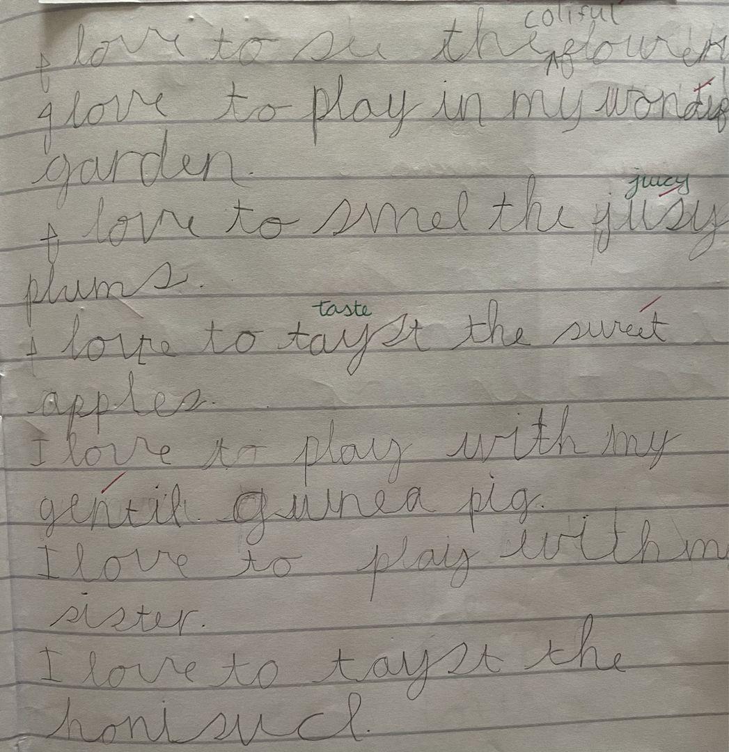 Throughout the term there are opportunities for extended writing. On a termly basis samples of these extended writing outcomes are used for assessment purposes. Through extended writing children are given the opportunities to plan, draft, edit and re-draft their writing.