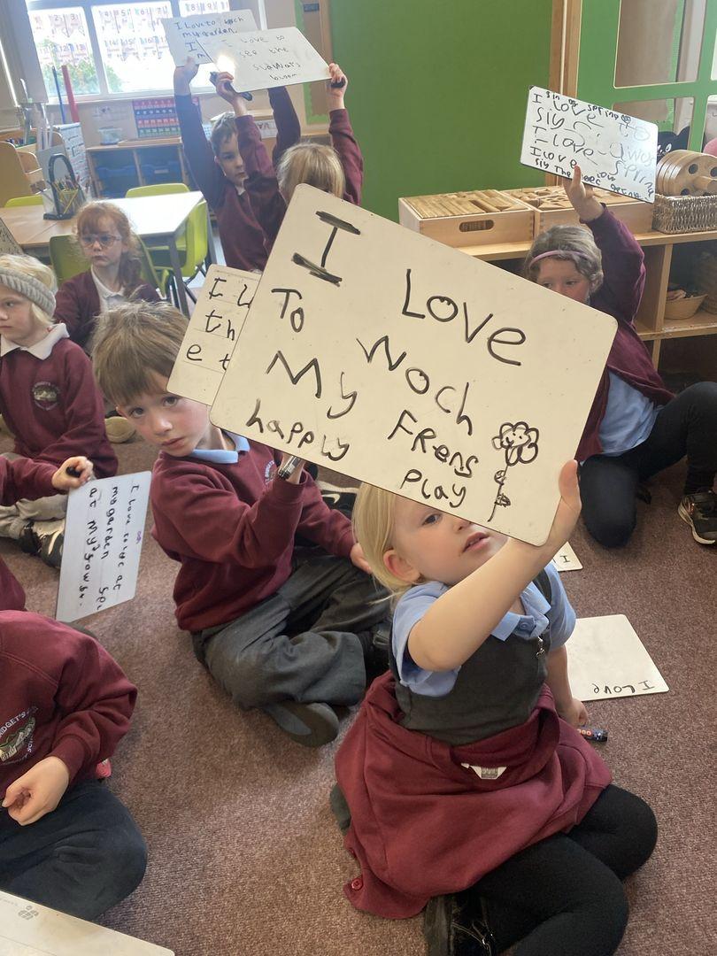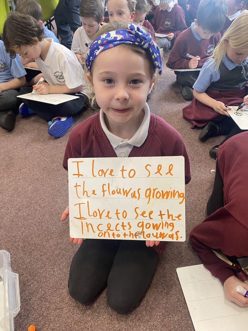 In our Nursery class mark making is encouraged in many of the areas of Continuous provision (both indoors and outdoors) In Reception the children are given opportunities to write across the continuous provision as well as in the daily phonics sessions as well as literacy based and other curriculum areas. Our Key Stage One children are given opportunities to write freely within a particular genre and across the curriculum. This gives them the opportunity to become emergent writers.