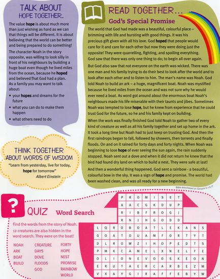 One of the main bible stories we will be focusing on will be the story of Noah's Ark- God's Special Promise as well as the Easter story. Read the Take Home sheet together with your child to find out more.