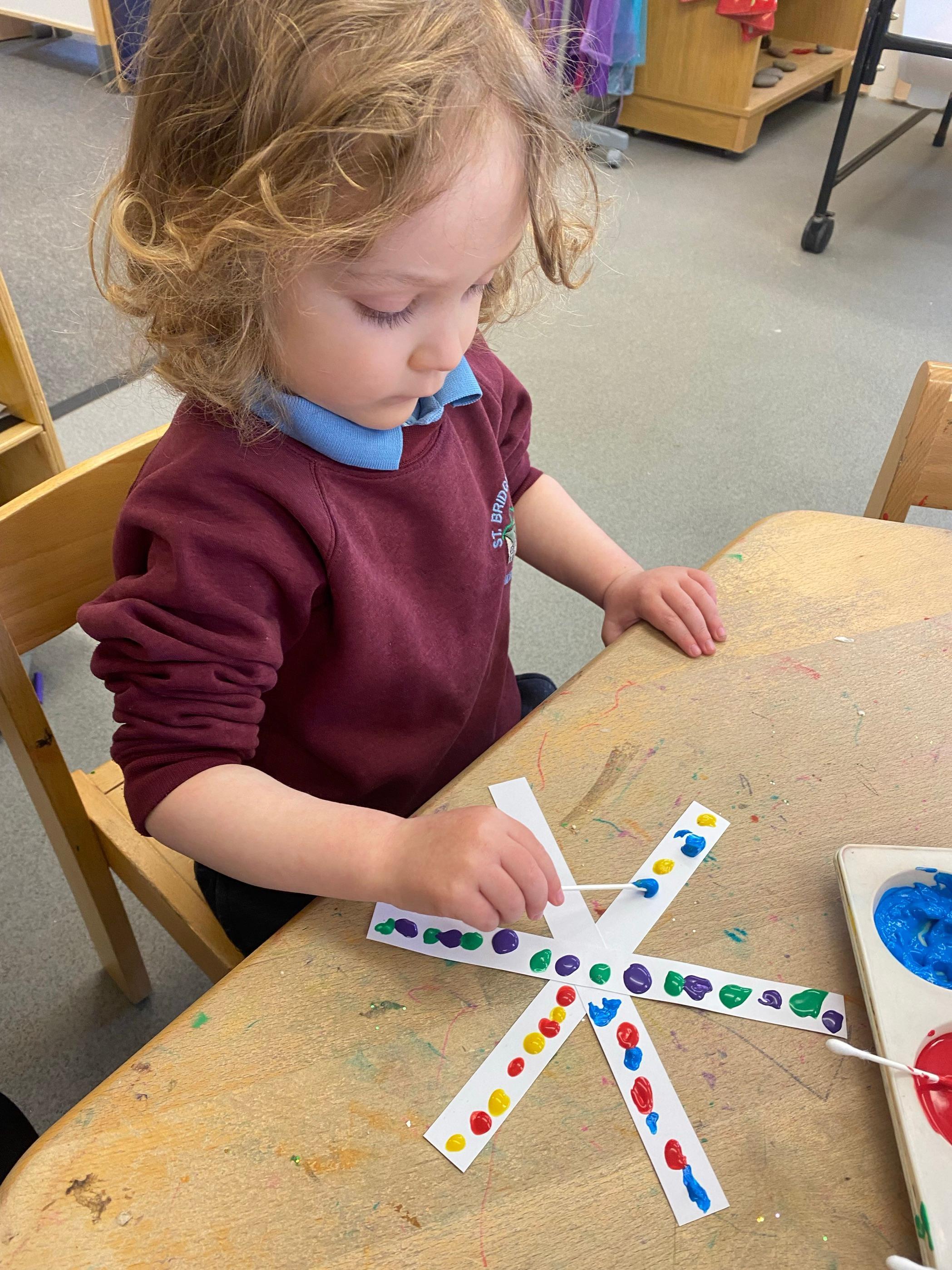 We have learnt the nursery rhyme inch wincy spider and enjoyed making our own spiders. We went on a spider hunt and spotted quite a few!