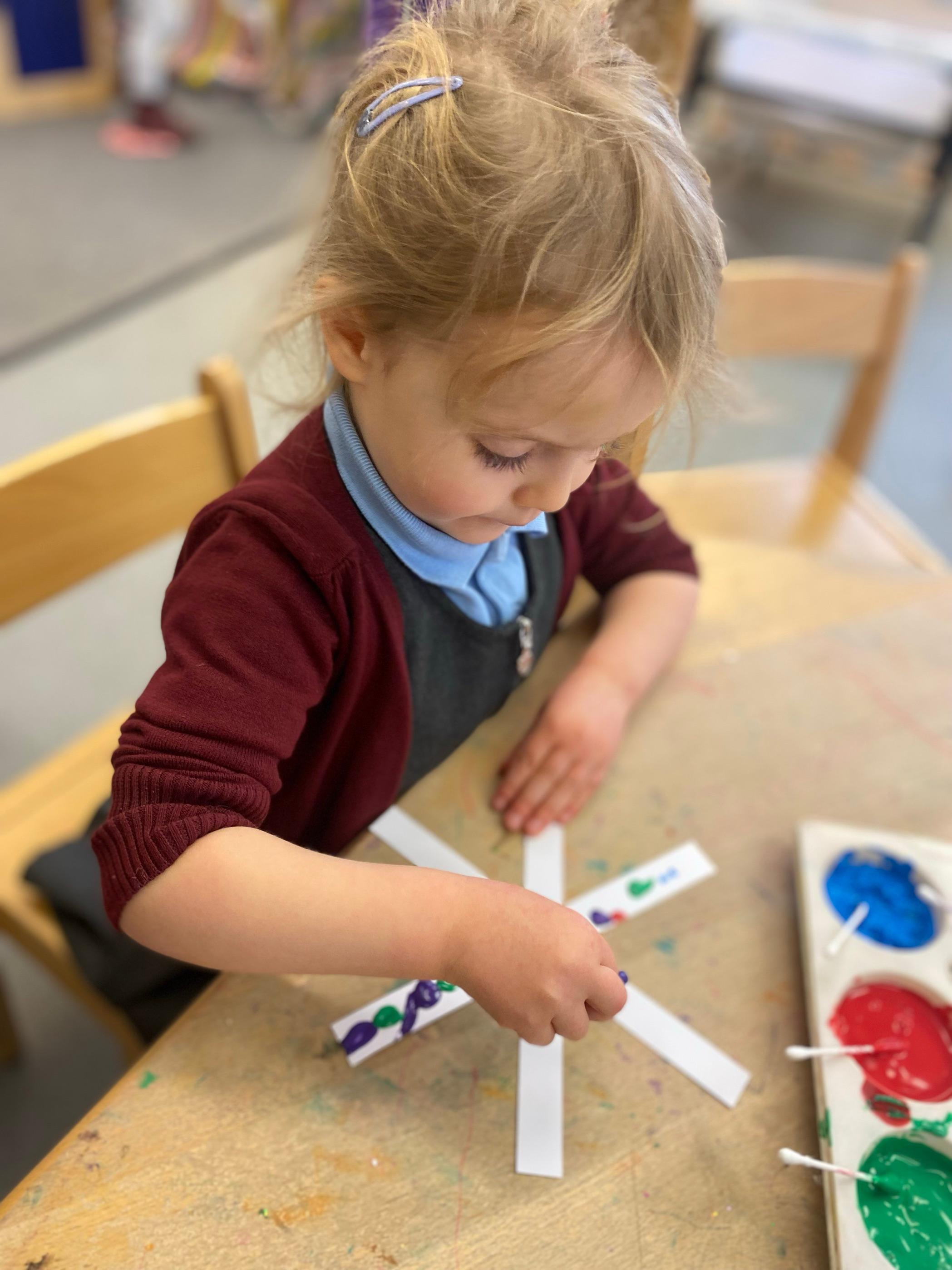 Fine motor skills to create our own Christmas decorations.
