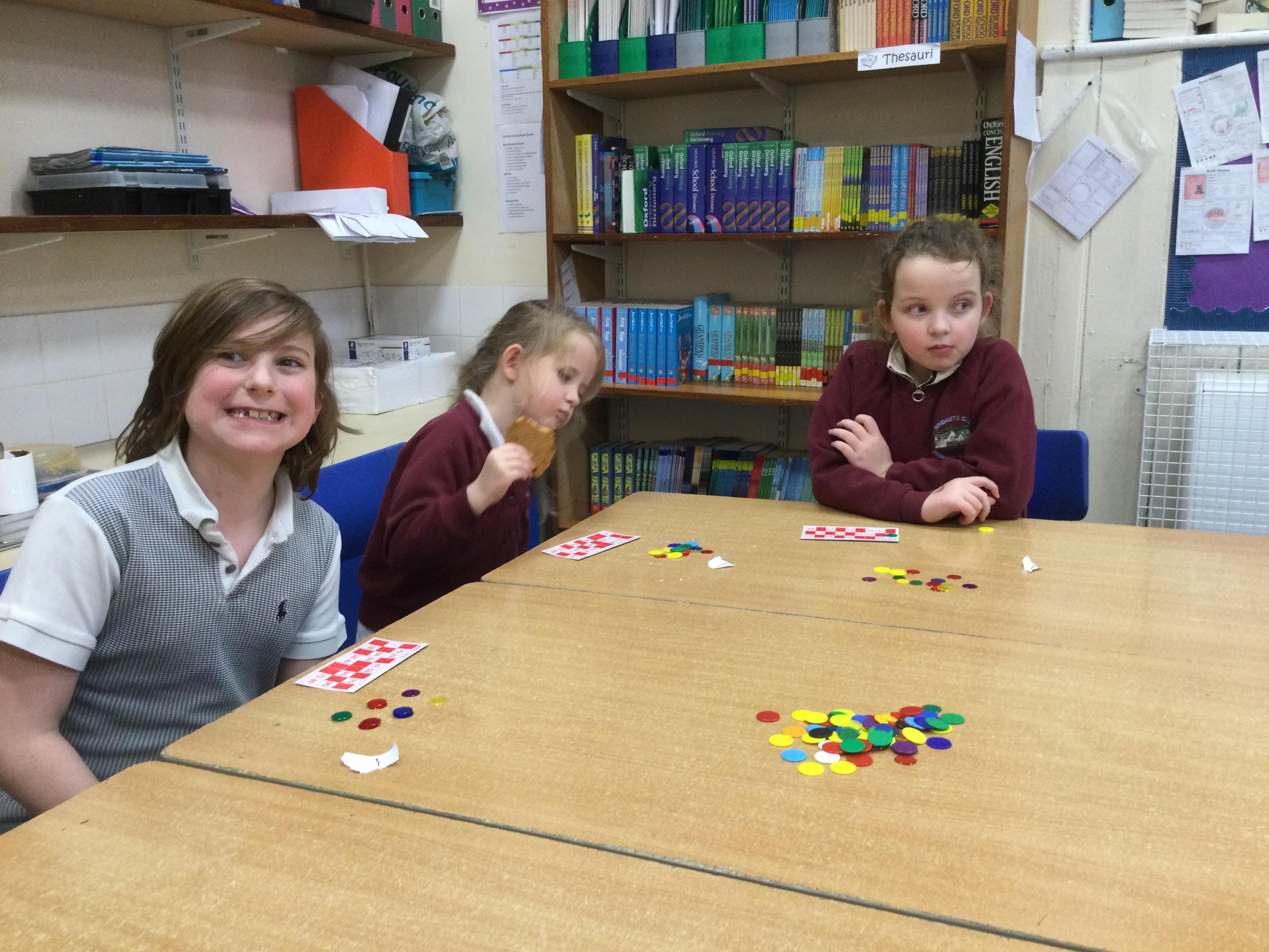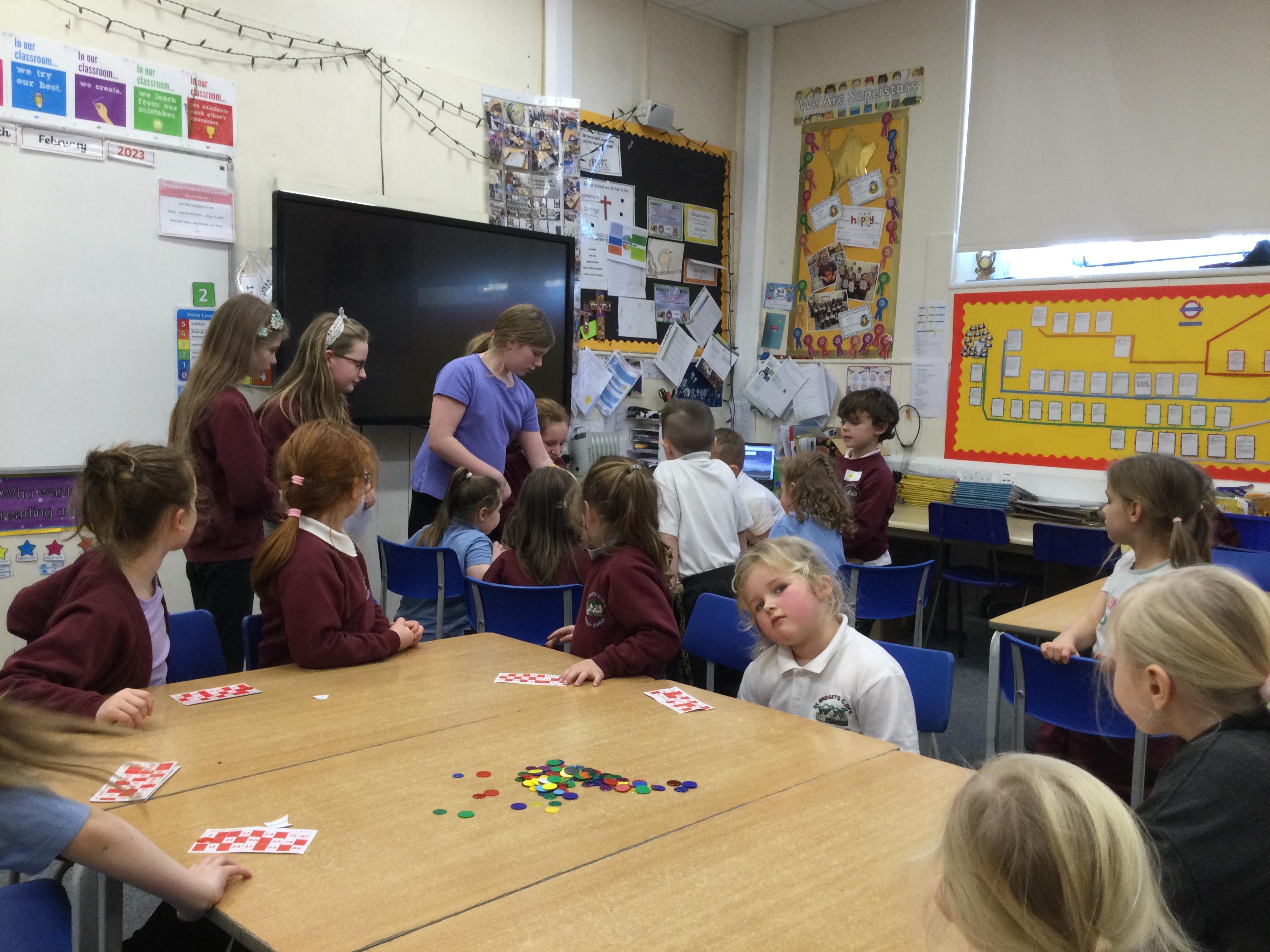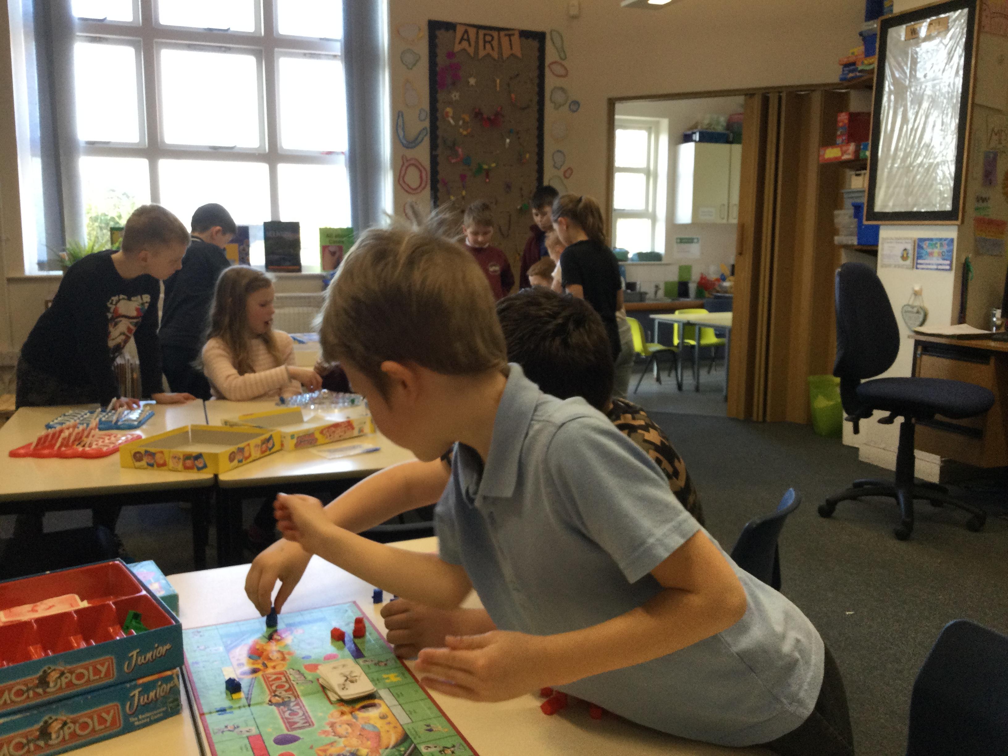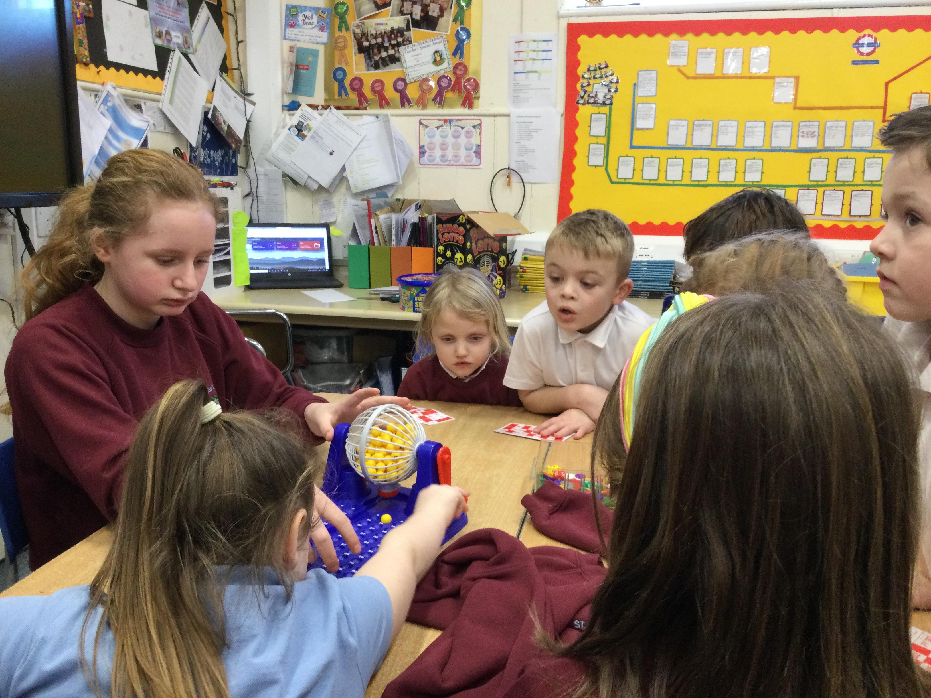 Whole school games afternoon - class 4 (years 5 and 6) organised a games and cake afternoon to raise money for their chosen charity Cancer Research. Here, once again like our snow day, the children across the school are mixing and make good relations with children of all age ranges. The older children helped our younger members of school to build with construction, join in a game of bingo as well as play a new board game or join in with a Top Trumps challenge.