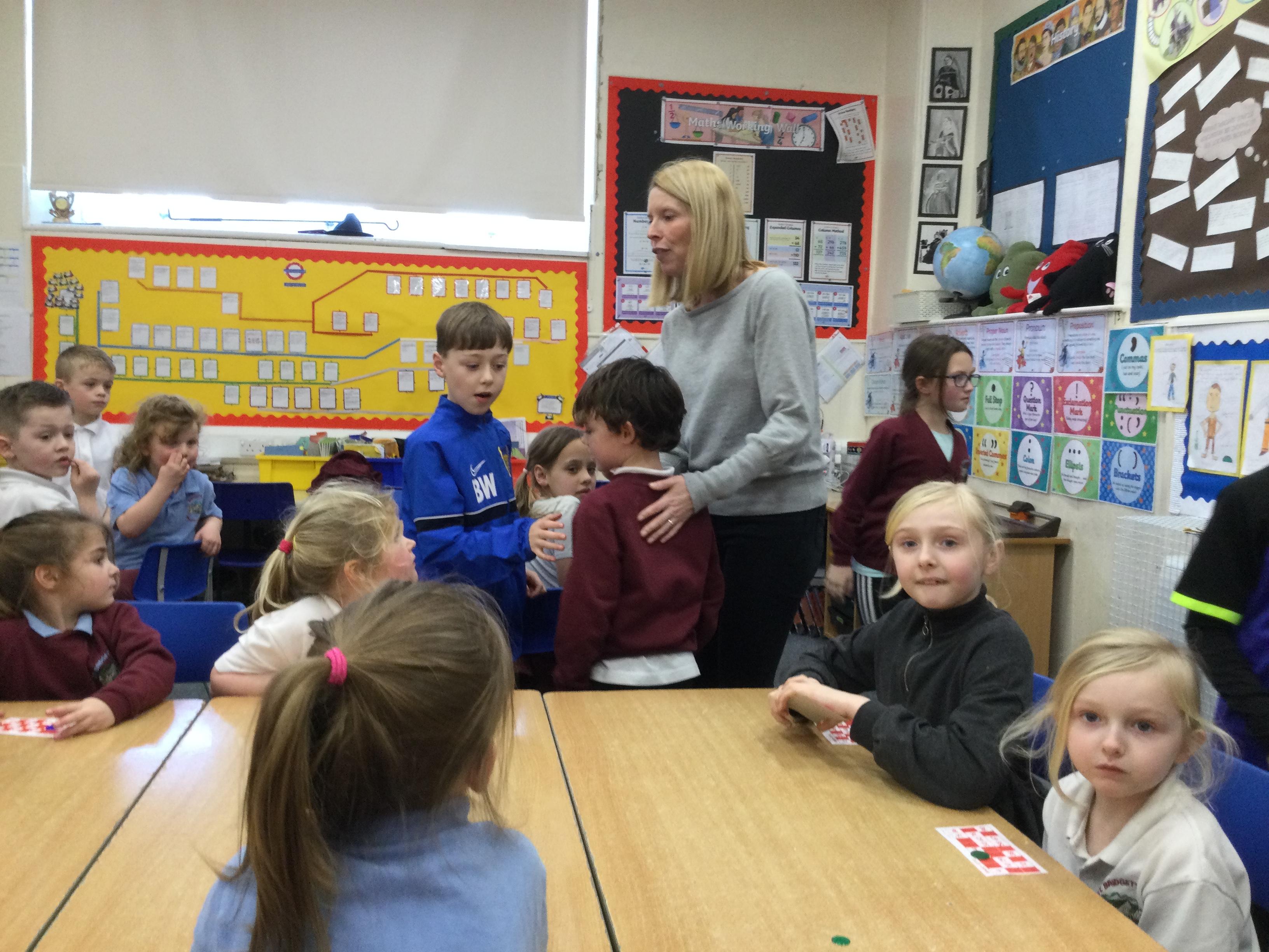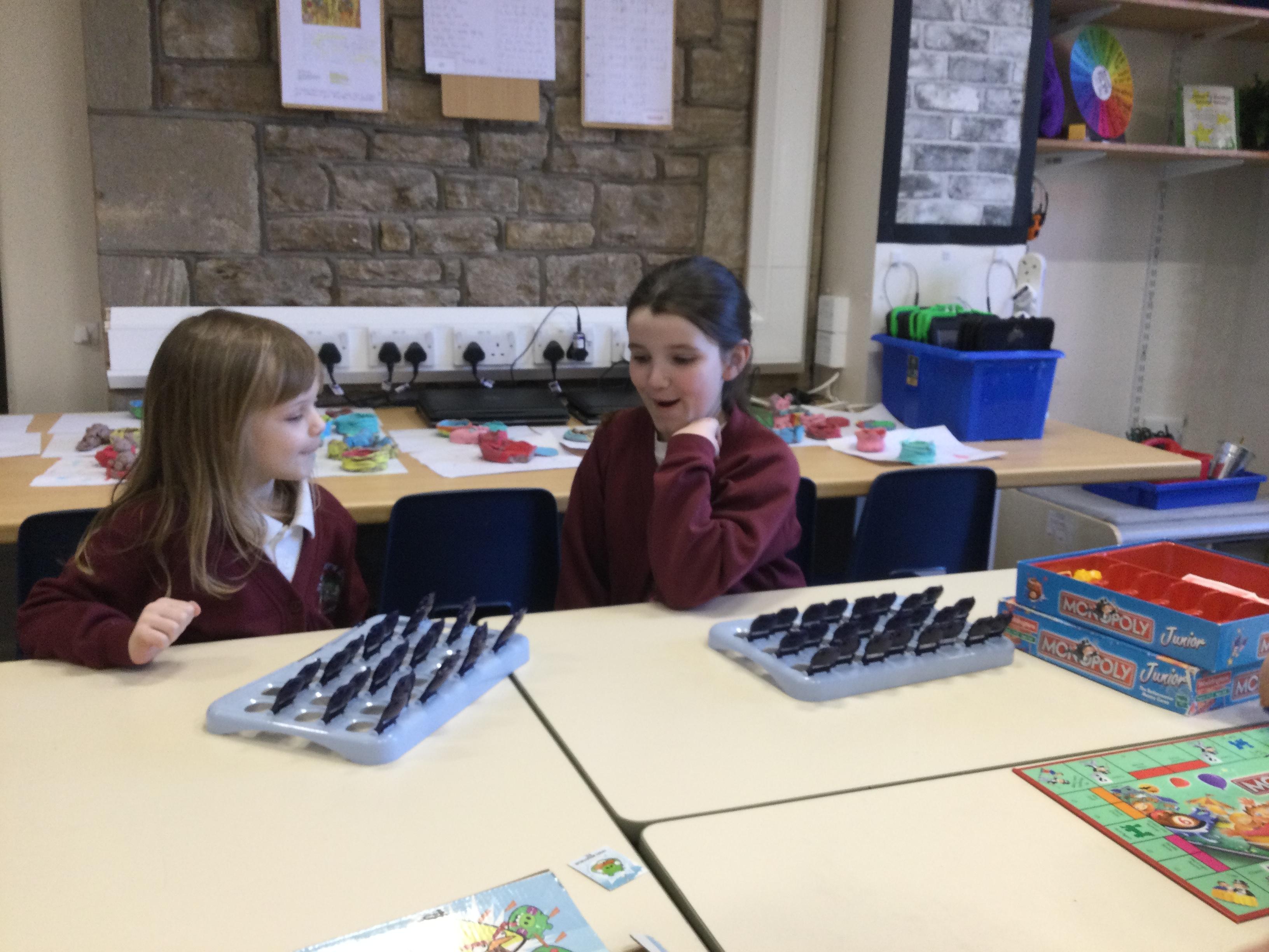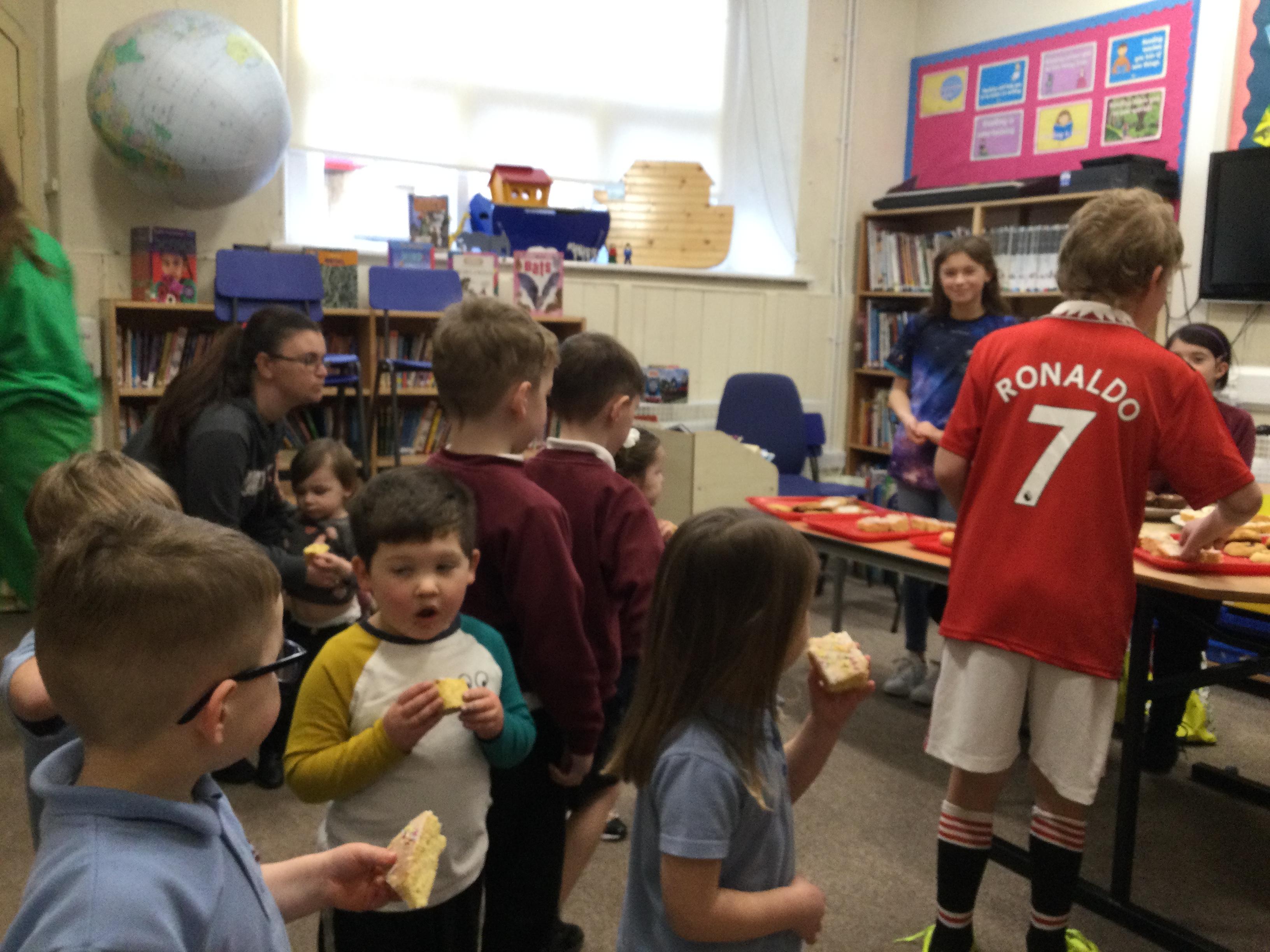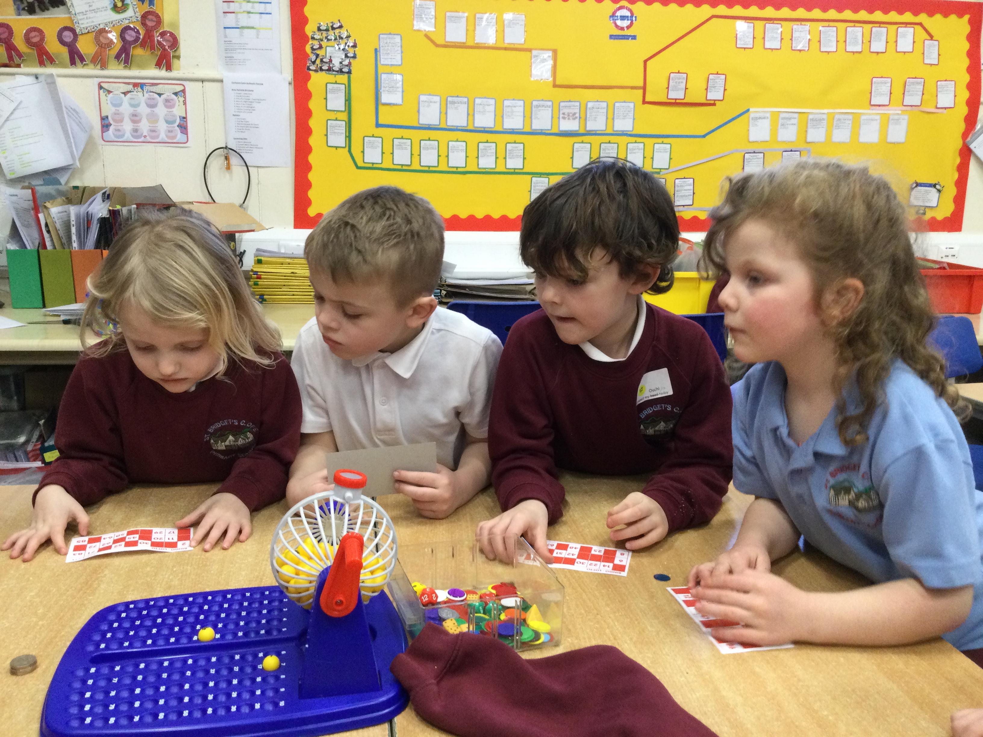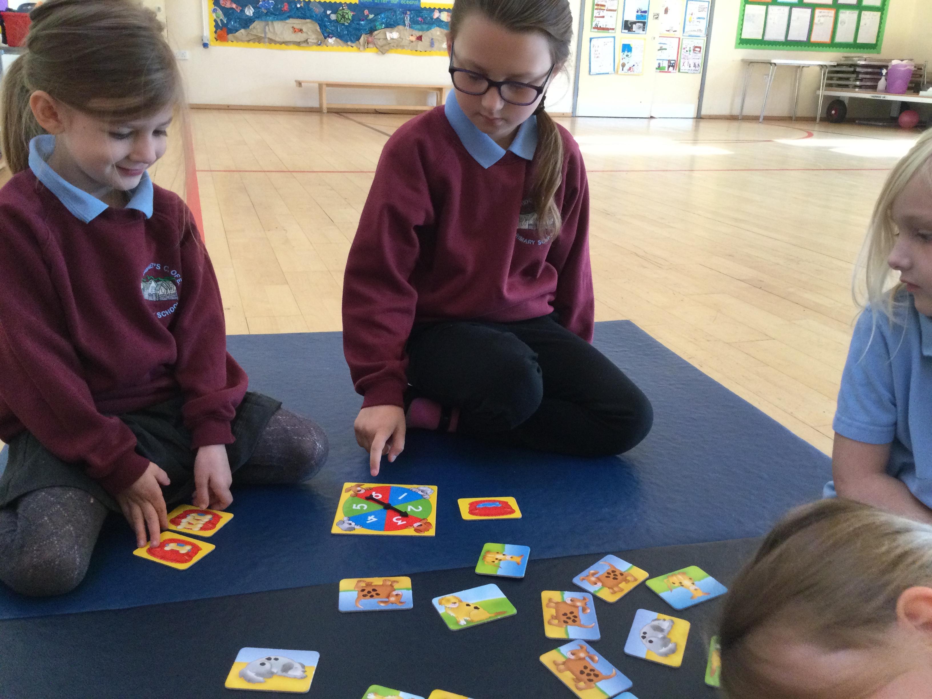 Whole school games afternoon - class 4 (years 5 and 6) organised a games and cake afternoon to raise money for their chosen charity Cancer Research. Here, once again like our snow day, the children across the school are mixing and make good relations with children of all age ranges. The older children helped our younger members of school to build with construction, join in a game of bingo as well as play a new board game or join in with a Top Trumps challenge.