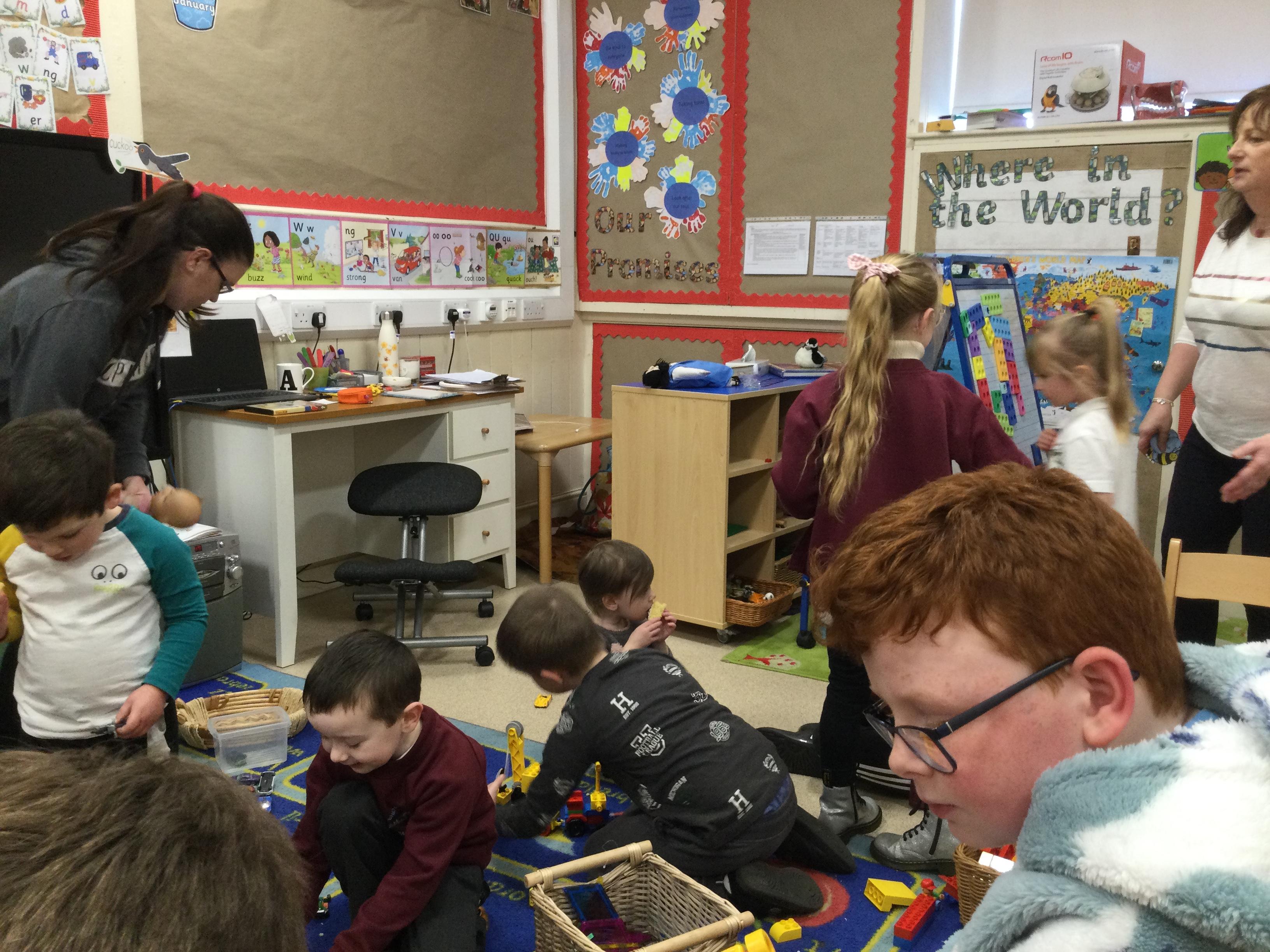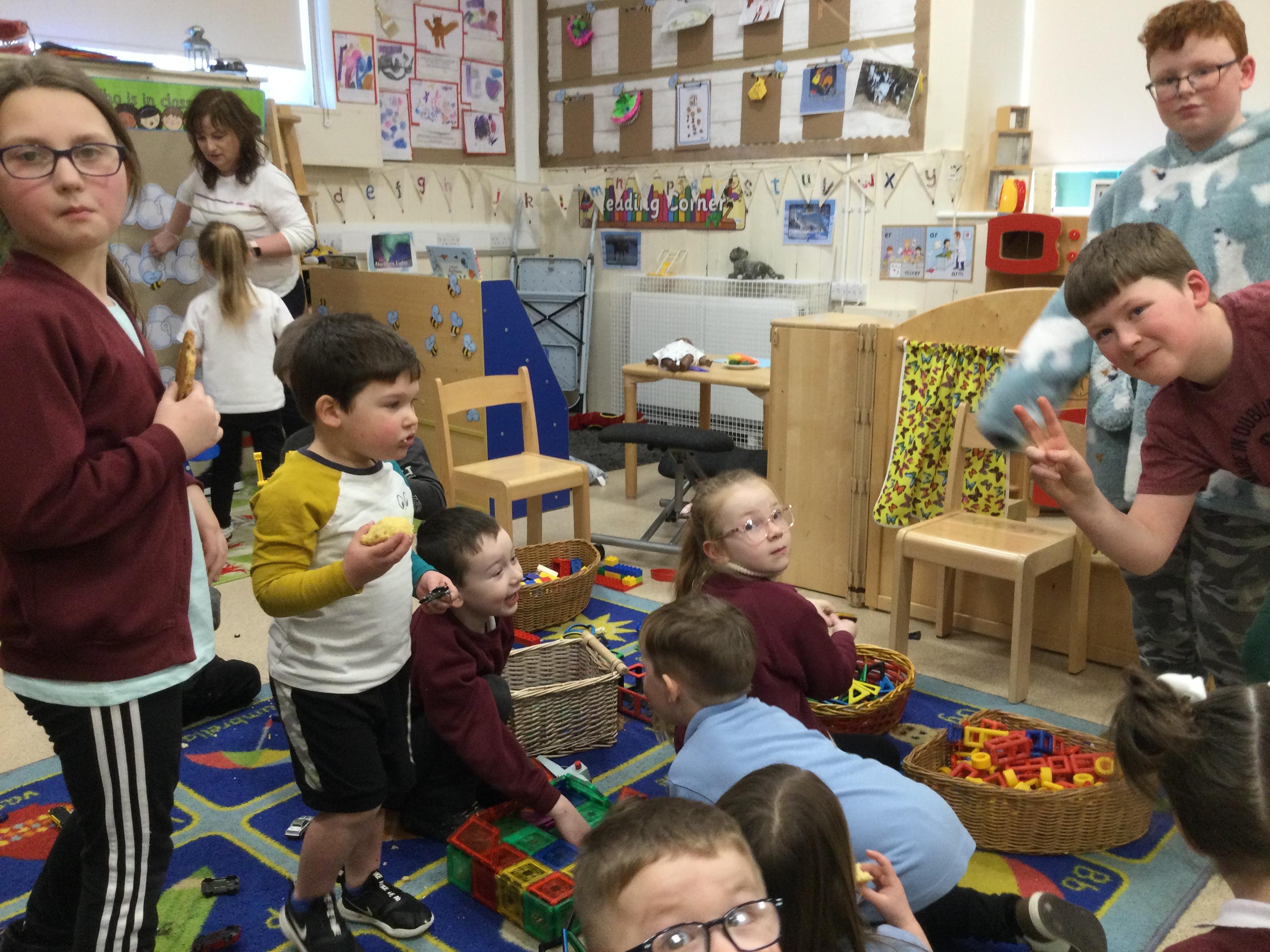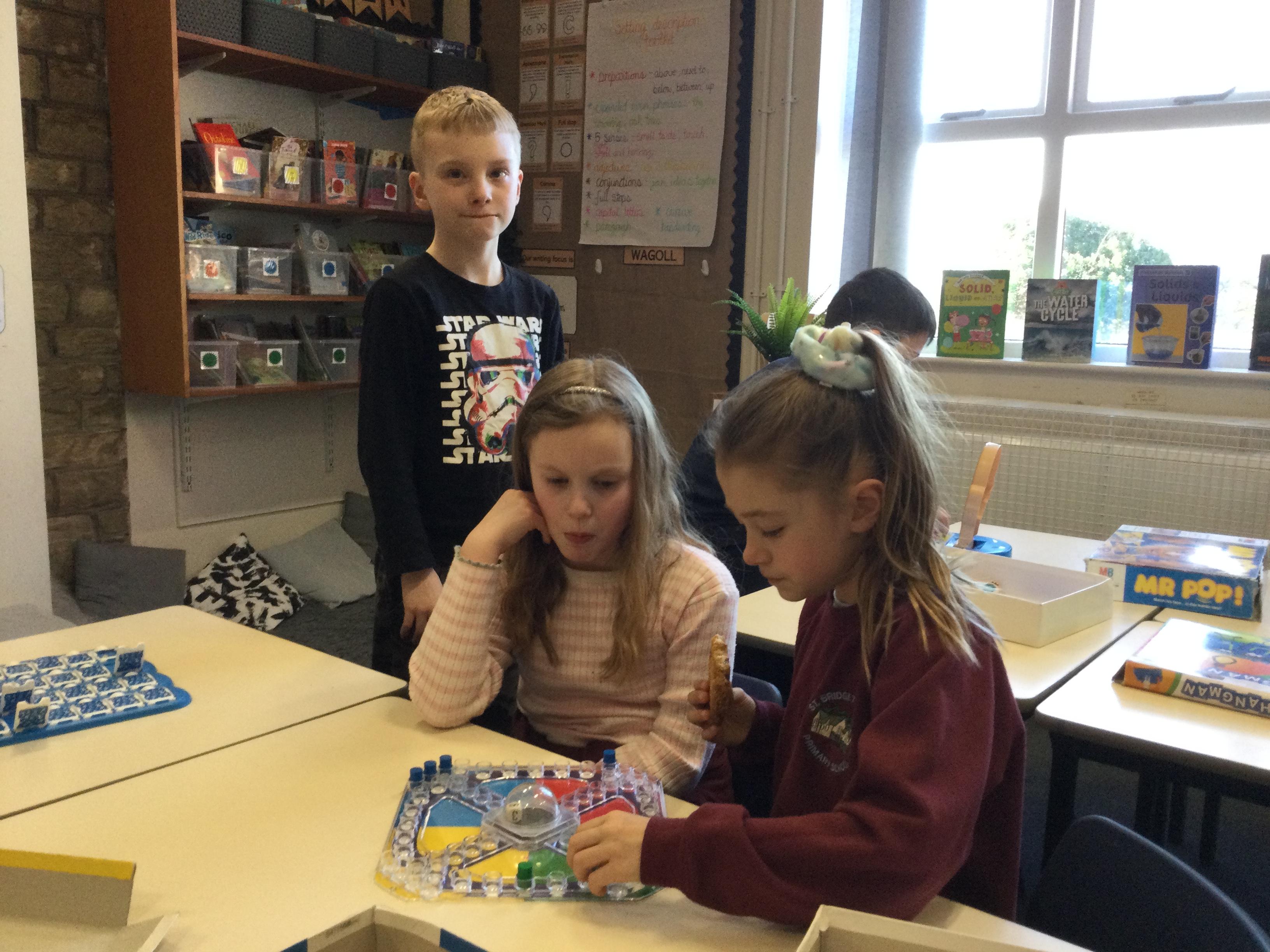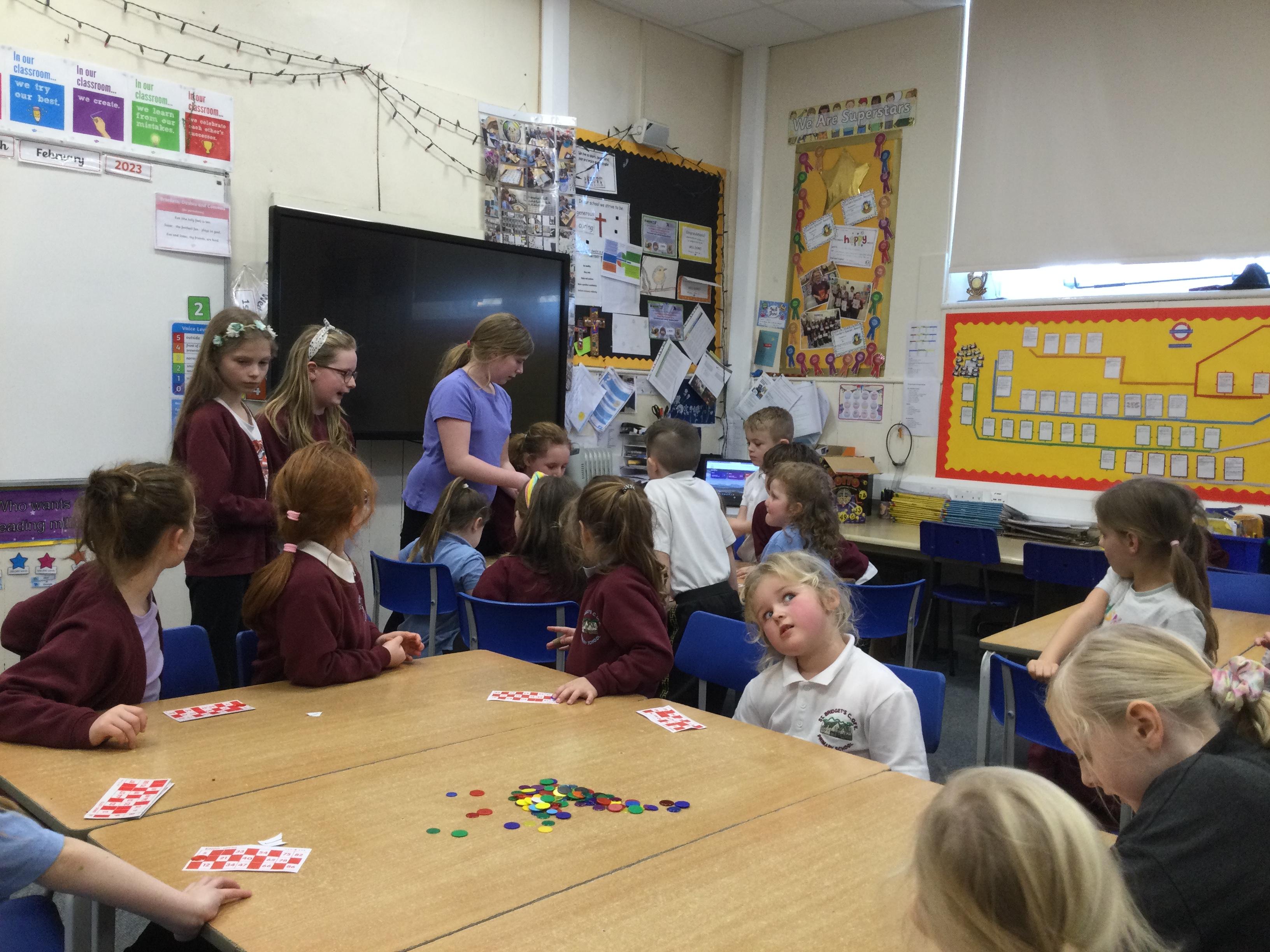 Whole school games afternoon - class 4 (years 5 and 6) organised a games and cake afternoon to raise money for their chosen charity Cancer Research. Here, once again like our snow day, the children across the school are mixing and make good relations with children of all age ranges. The older children helped our younger members of school to build with construction, join in a game of bingo as well as play a new board game or join in with a Top Trumps challenge.