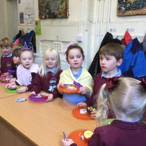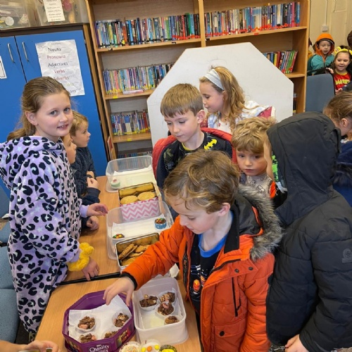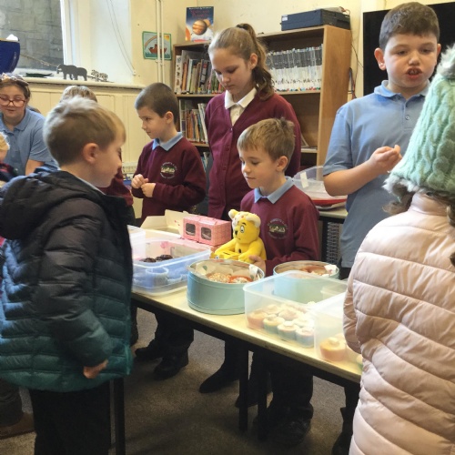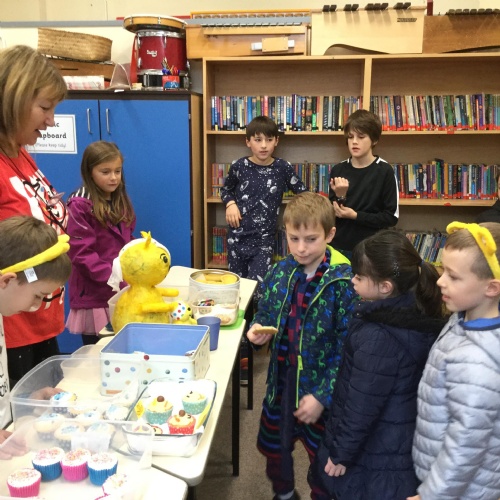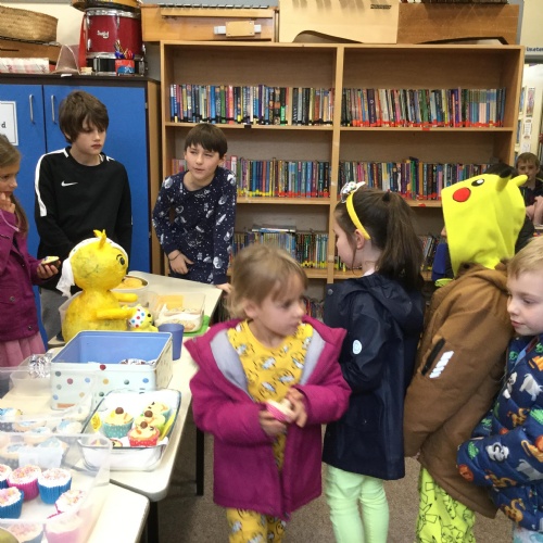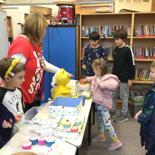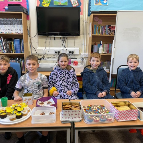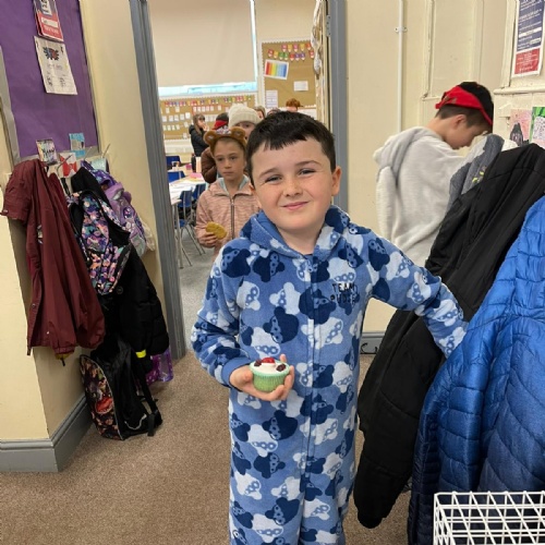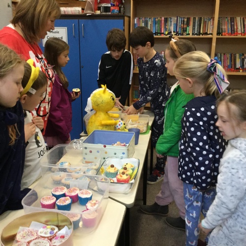 We asked our classmates how they wanted to celebrate the day. The majority of he children wanted to come to school in their pyjamas. We also held a cake sale. The cakes were baked by Mrs Hemingway, Mrs Taylor and the families of the school councillors - thank you so much.