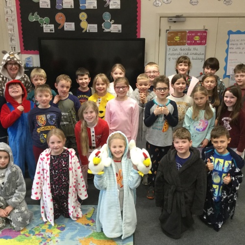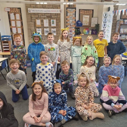 Fund raising on St Bridget's Day 2020 - we tried to replicate the kindness of St Bridget by dressing up in our pyjamas to help Harvey Park raise money for new bedding for the children's Ward at the Freeman Hospital in Newcastle.
