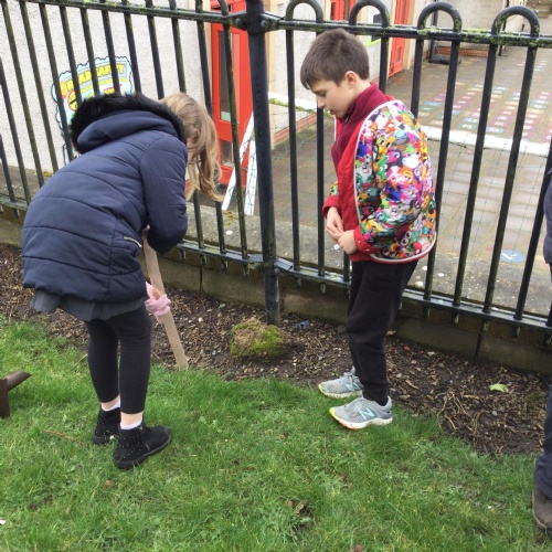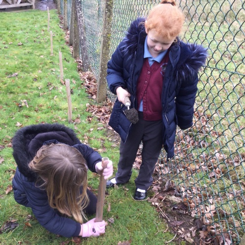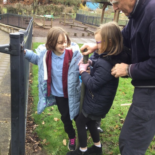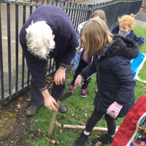 Planting trees to celebrate the Queens's Platinum Jubilee. We loved this activity but couldn't have managed it without the help of Tony Edwards - Grandad to Noah and Arthur. We planted Rowan, Crab apple and Hazel trees - all within the school grounds. Our school councillors were short on numbers so we co-opted Georgia and Isabella in to help.