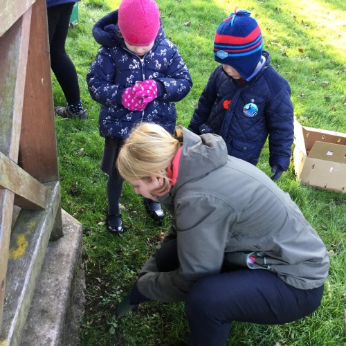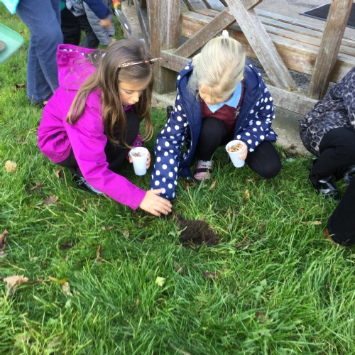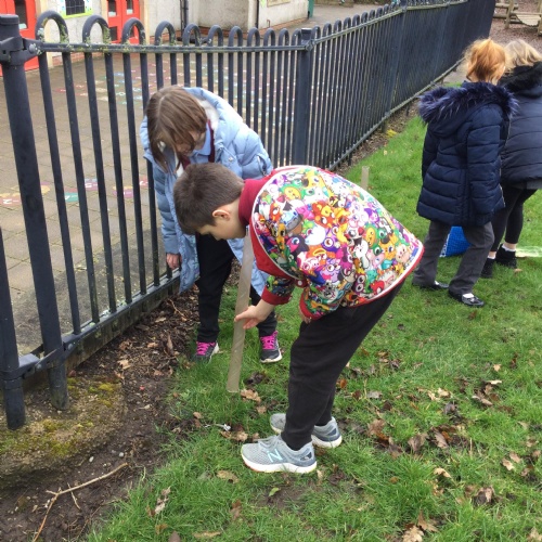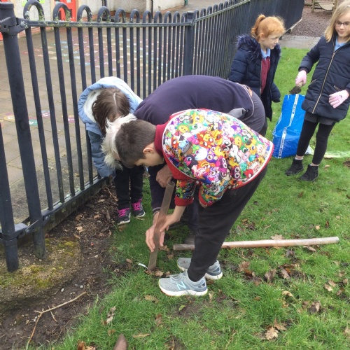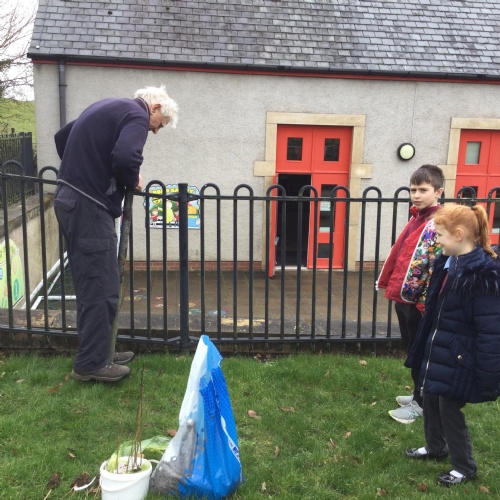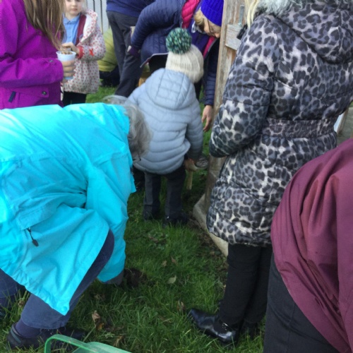 In October we were given some purple crocus bulbs from the Rotary Club. Some of the Rotary members are actively involved in our school life: Bev and the two Johns (as they are known to the children) hear readers every Monday afternoon. But on Monday 28th October reading was replaced by planting these beautiful bulbs to mark World Polio Day which was celebrated nationally the eek before. We are so lucky in this country that this cruel disease is non existent but in other parts of the world, life instance India, Polio is rife and causing much heart ache and suffering. We were further joined by Brigham Gardeners who organised the planting on our school grounds.