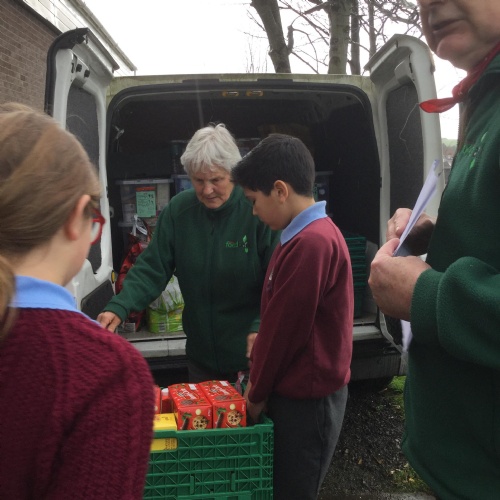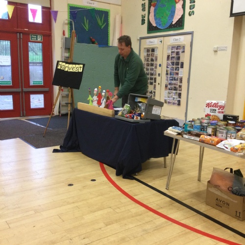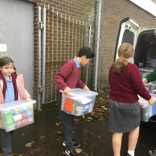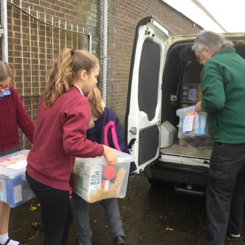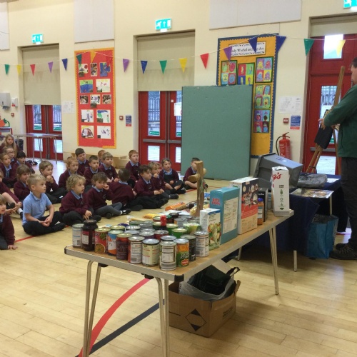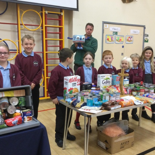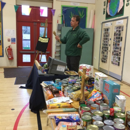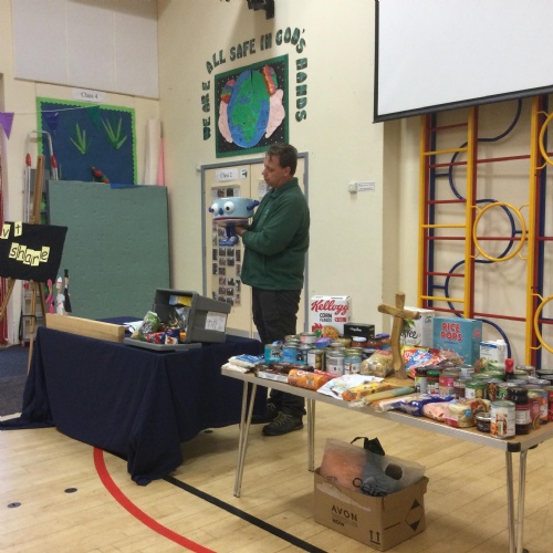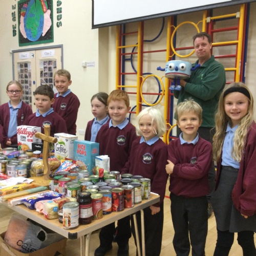 Our first school council initiative was to organise a collection for our local food bank. Stuart came to deliver a collective worship all about celebrating Harvest. The school council then presented all the food our very kind and generous families have donated. Stuart w@s so grateful.
