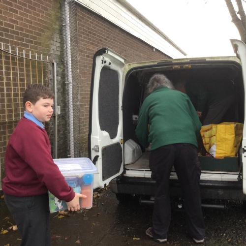 Helping load the van heading to the depot.