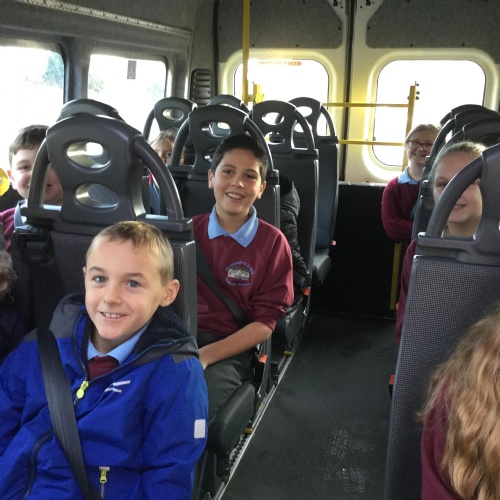 All strapped in the bus.