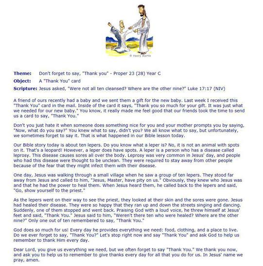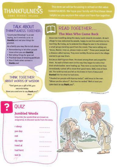 Our Christian value for this half term is Thankfulness.  Christians believe that God loves and cares for them in many different ways in all aspects of their life. They know their response to this provision should be one of thankfulness and praise. We will be using songs, hymn, bible stories etc to help the children realise the importance of saying and most importantly feeling thankful. Our main bible story is 'Jesus heals the 10 men' where only one of them returns to say thank you. (Luke 17: 11-19). Please take time to look at our Take Home Sheet as this helps you to explore values and have fun together.