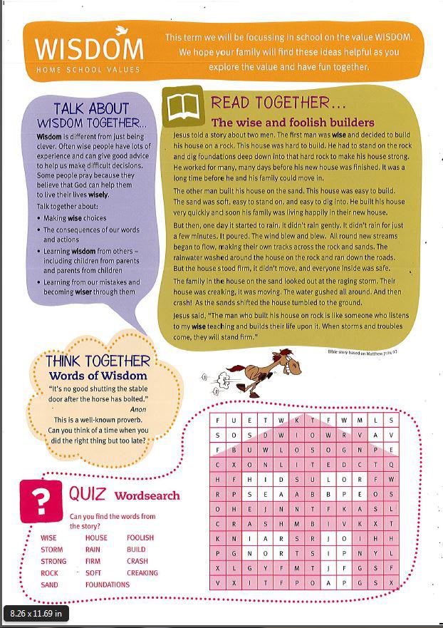 Our Christian Value this half term is Wisdom. Wisdom is different to just being clever. Often wise people have lots of experience and can give good advice to help us make difficult decisions. Some people pray because they believe God can help them to live their lives wisely.